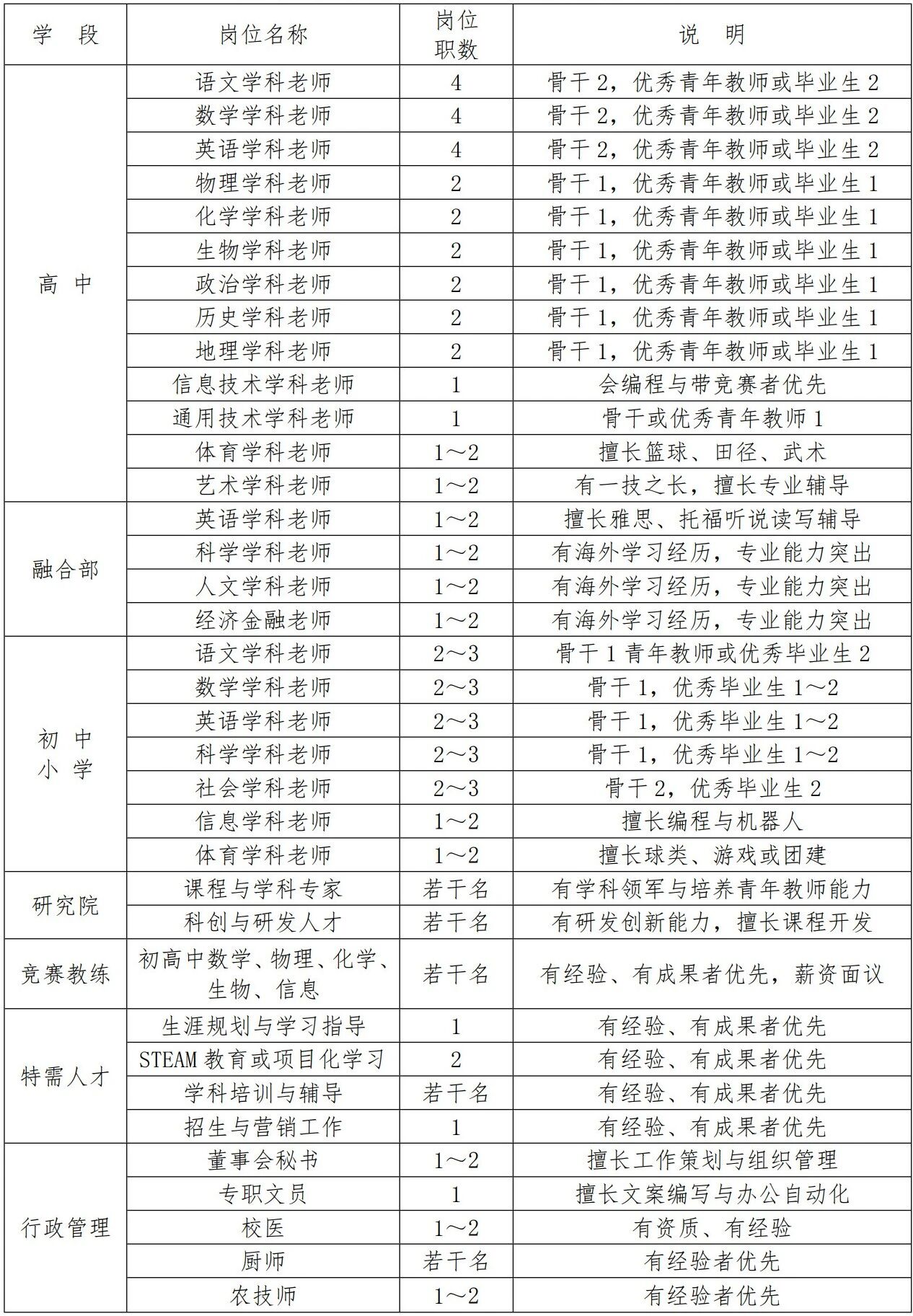 2.特需教师、行政管理、后勤人员等具体工作与工资根据岗位与绩效面议。